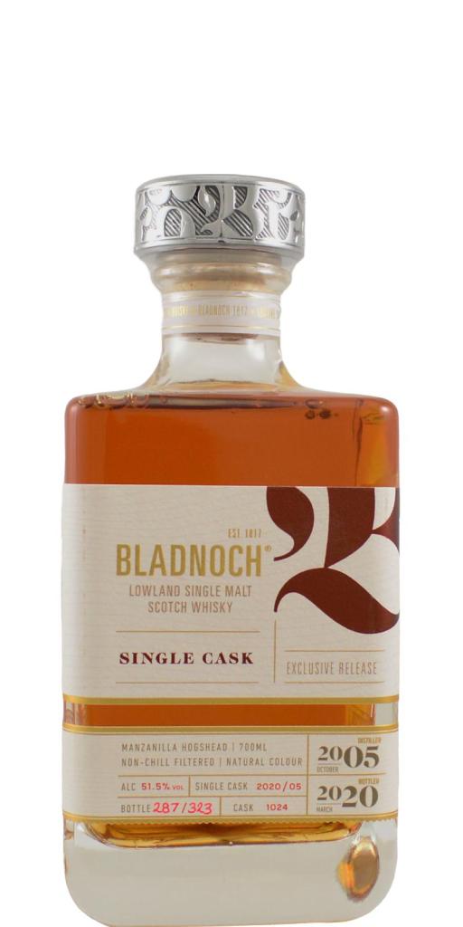 - Bladnoch 15, 2005-2020, Manzanilla Cask, 51.5%