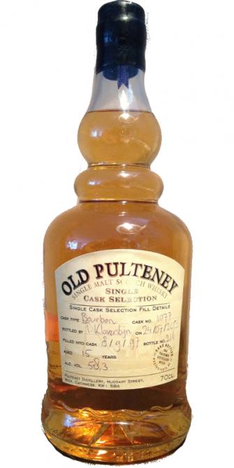 So, bourbon cask Old Pulteney. The type of cask that works best with that spirit, if you ask me. But then again, that goes for most distilleries and most whiskies. It’s a 15 year old, which is a good age at which the new make has sufficiently matured and the alcohol has mellowed, but it’s not typically so old that the cask dominates everything.