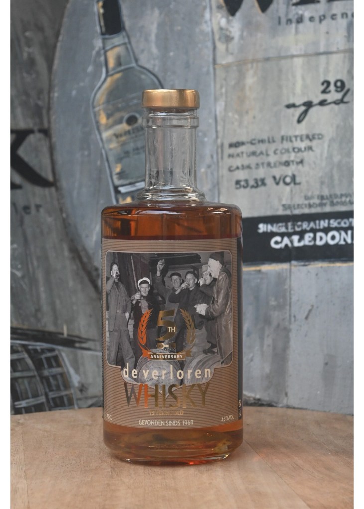‘De Verloren Whisky’ or ‘the lost whisky’ is based on a story of ships losing casks of whisky in a storm in 1969. The casks washed up on a beach on Terschelling (one of the Dutch islands). The story inspired Joris Dam of Dam Dranken and King Cask to start bottling his own whisky and to make the change from having a liquor shop to being a bottler.